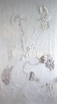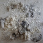 2014Blanc 2 is een vilterij die is opgebouwd uit gladde gekaarde merinonwol, lokken haar van de angorageit (de geit is geschoren en leeft nog steeds happy op de kinderboerderij) en ruwe schapenvacht. Hierdoor ontstaat een prachtig 3D effect. Quart blanc is een vierluik, die ook afzonderlijk te koop zijn.